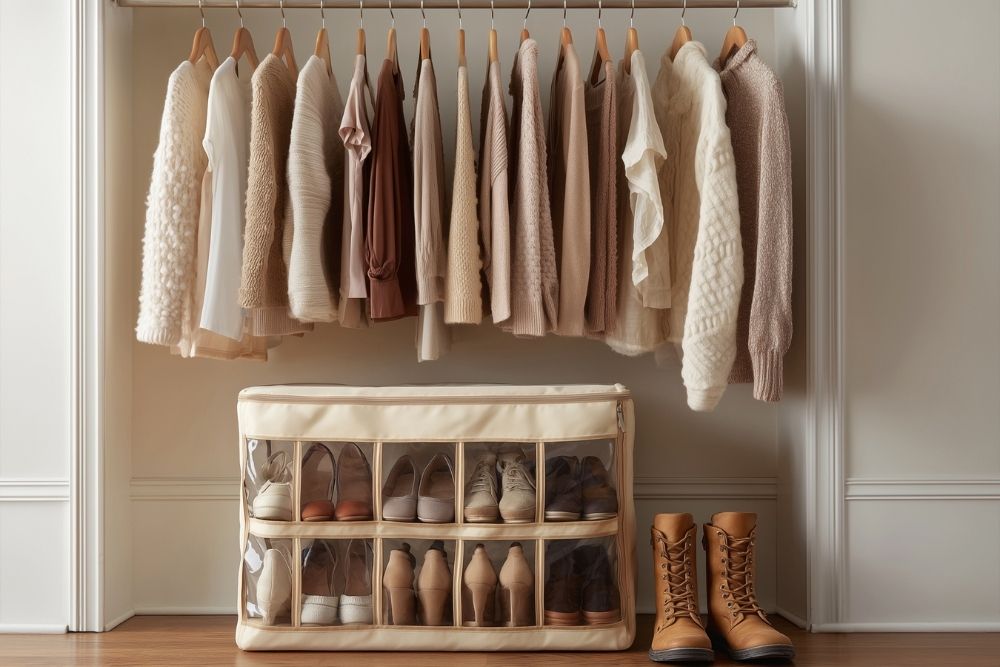 organized minimal white closet